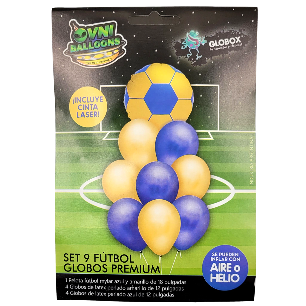 Contiene: 1 Pelota fútbol mylar azul y amarillo.