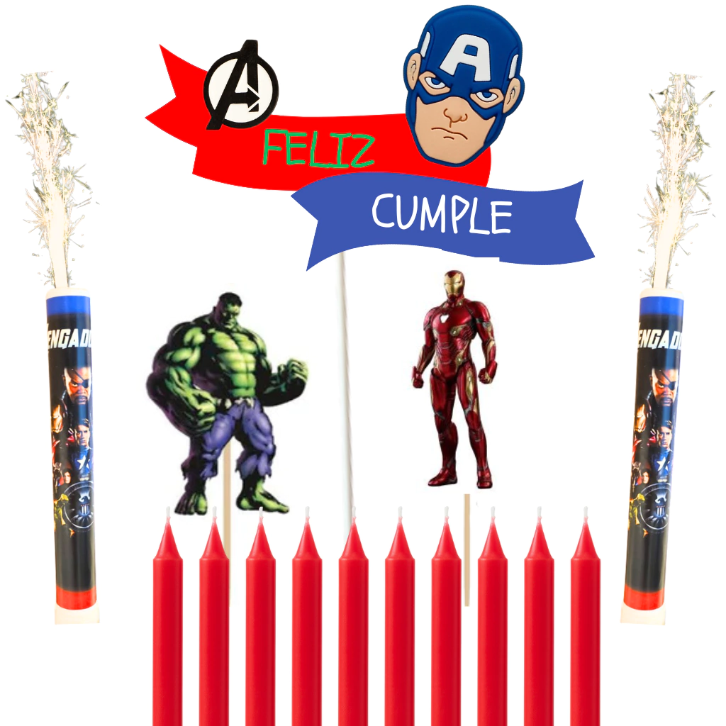 Este combo tiene 2 bengalas, 1 topper de 3 piezas y 10 velas Celebrate ROJO