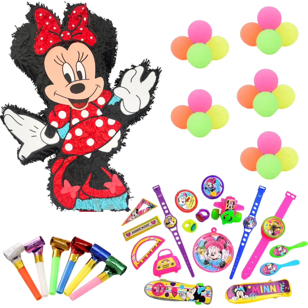 Una opcion super completa para los cumpleaños Este kit incluye: 1 piñata del personaje 20 pelotitas saltarinas 12 asusta suegra metalizados 20 miniaturas surtidas de juguetes temáticos