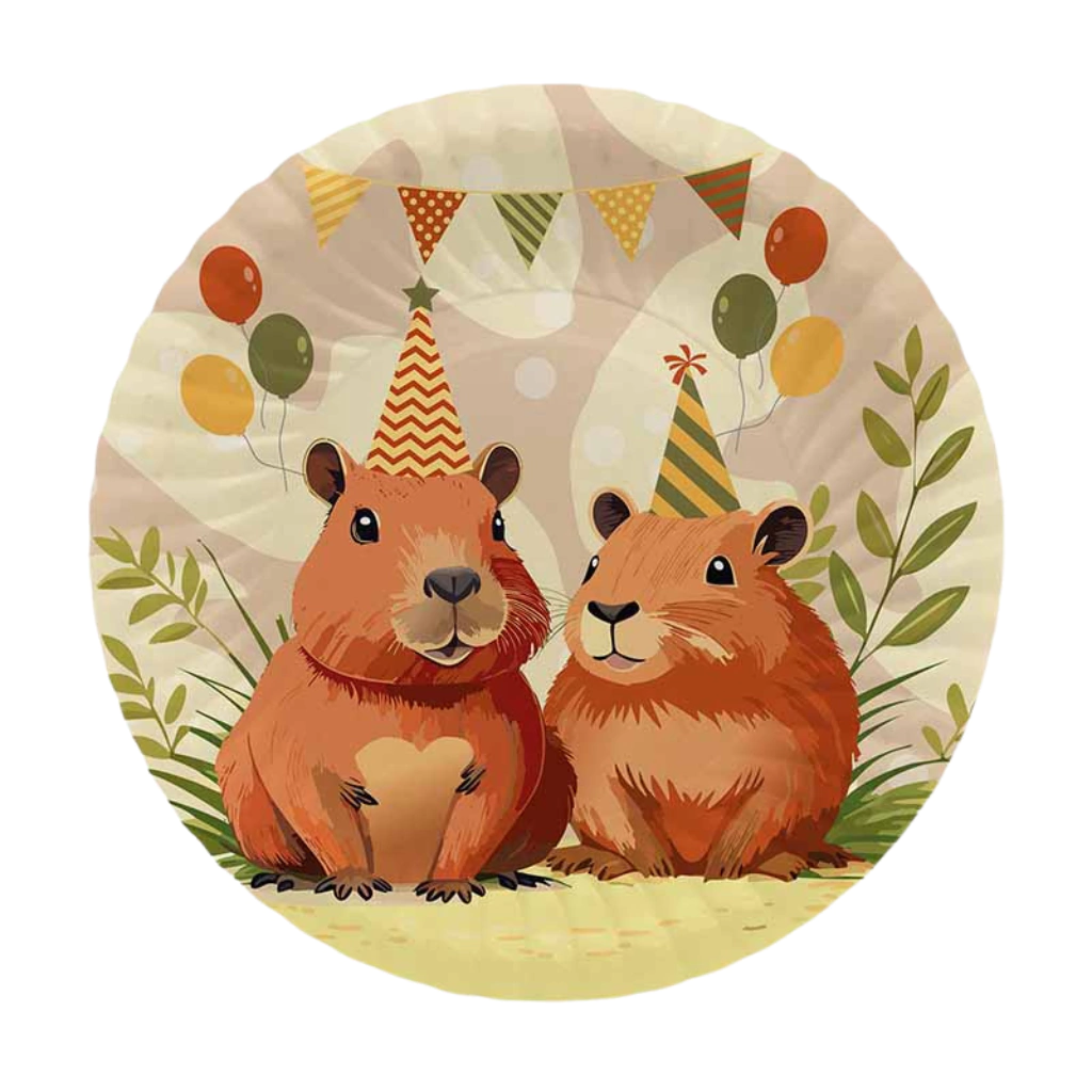 Plato Carton 18 Cm Carpincho Capibara X8 Un