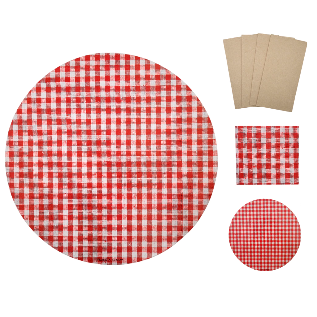 Podes comprarlos con portaservilletas, con portaservilletas y posavasos, con portaservilletas, posavasos y servilletas o solos.