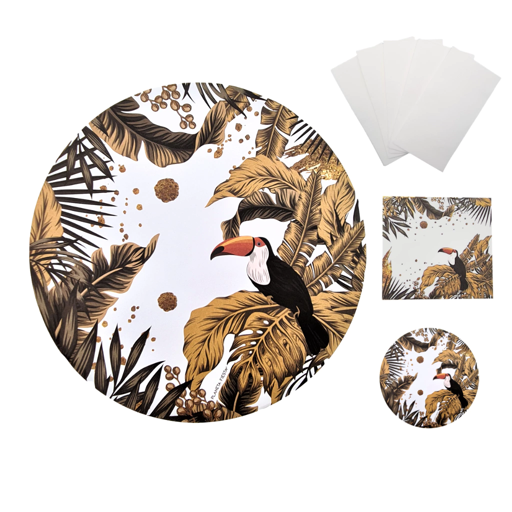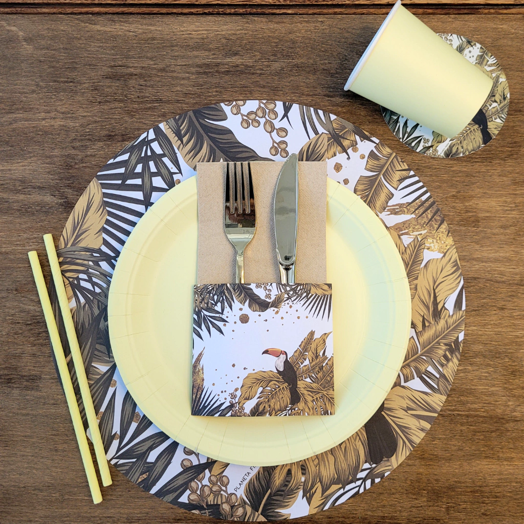 Podes comprarlos con portaservilletas, con portaservilletas y posavasos, con portaservilletas, posavasos y servilletas o solos.