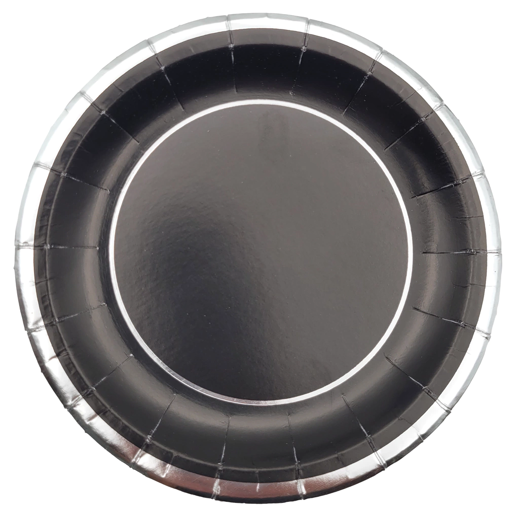 Plato Negro Con Borde Plateado