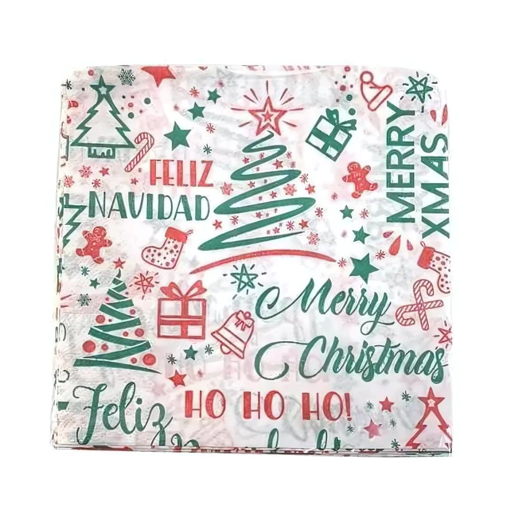 SERVILLETAS TISSUE FELIZ NAVIDAD HOHOHO Detalles en Verde y RojoX 20 UN