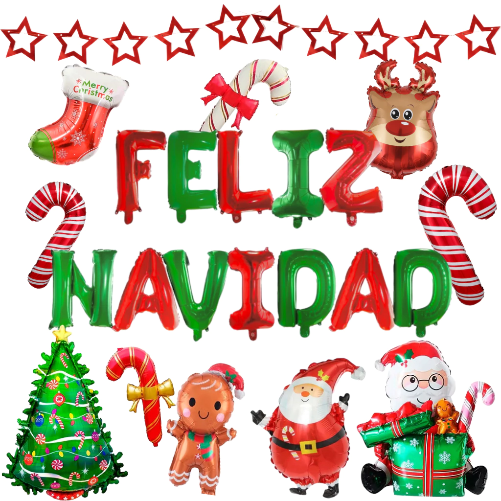 Armá una decoración navideña soñada con este combo súper completo. Incluye todos los globos que ves en la foto para crear una mesa, rincón o fondo de Navidad lleno de color y diversión. Ideal para casas, locales, eventos, fotos y fiestas.