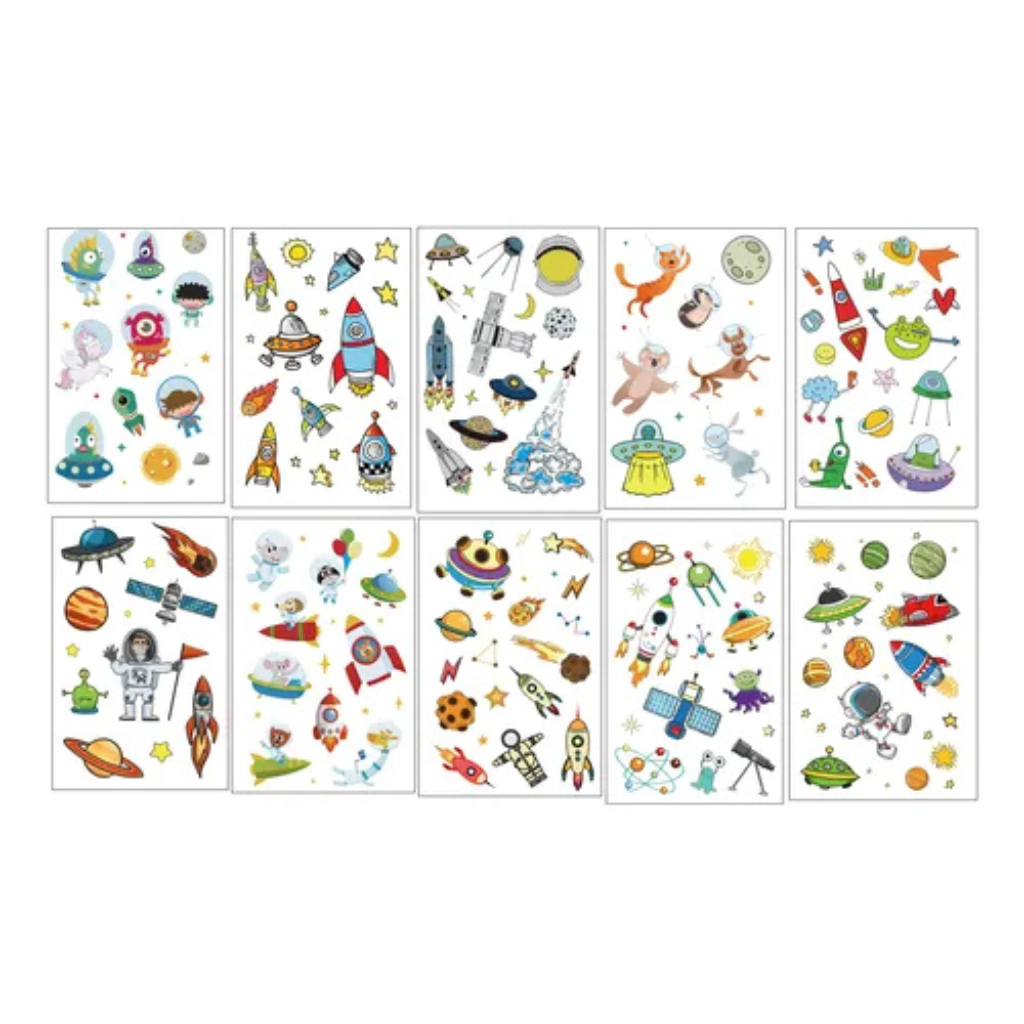 10 planchas de estickers del espacio surtidos. Super originales para todas las fiestas
